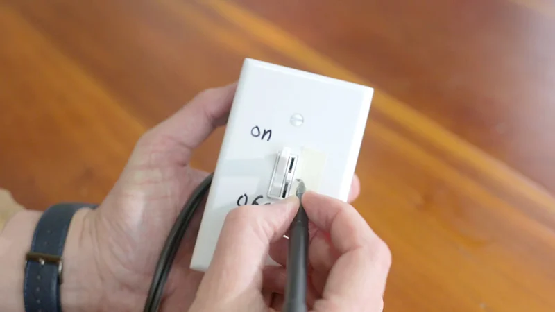 Seems silly to mark On/Off on a switch but because we made it portable vs mounted to the wall, it's easy to forgot which end is up. Here I'm marking on tape the position I need to dim the light up to during a shot.