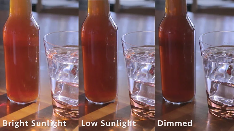 Note that any light or bright surface behind a liquid can help enhance it. Like daylight from windows or their reflection off a table top behind it. Also keep in mind that backlighting can also bring out any imperfections or scratches in glassware.